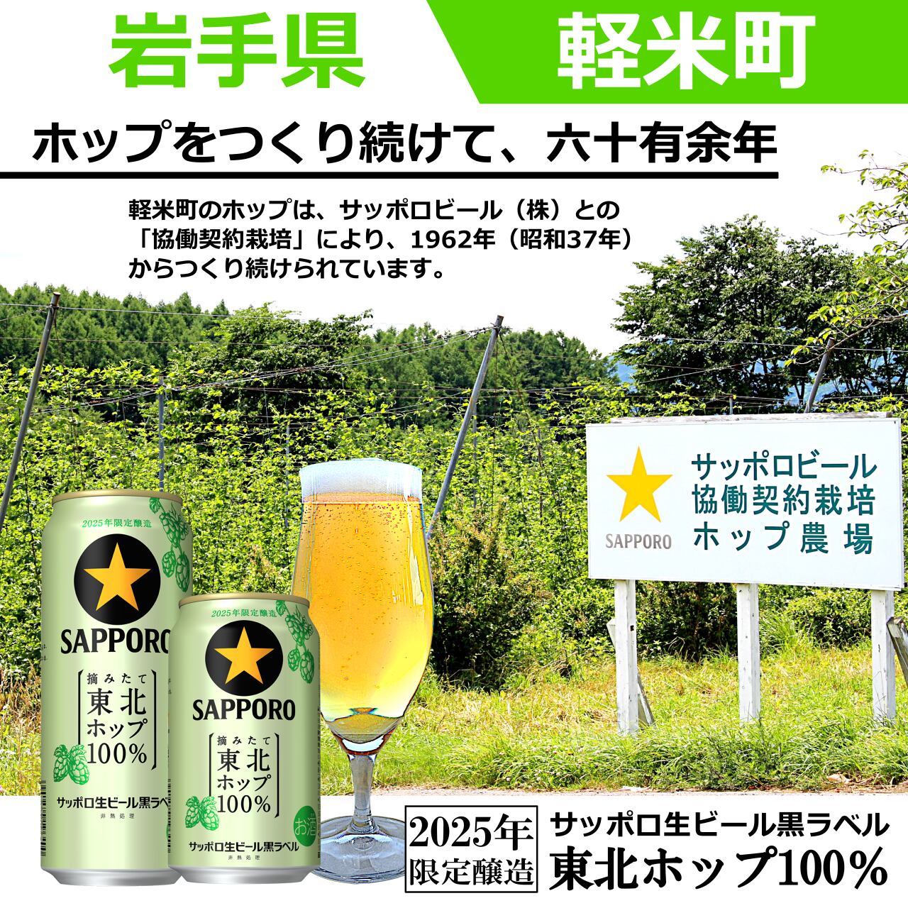 【2箱1個口】10/28発売/季節限定/エリア限定【2025年収穫軽米町産ホップ使用】「サッポロ生ビール黒ラベル 東北ホップ100%」500ml缶 24本(1箱)