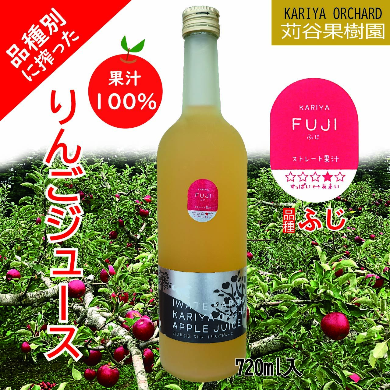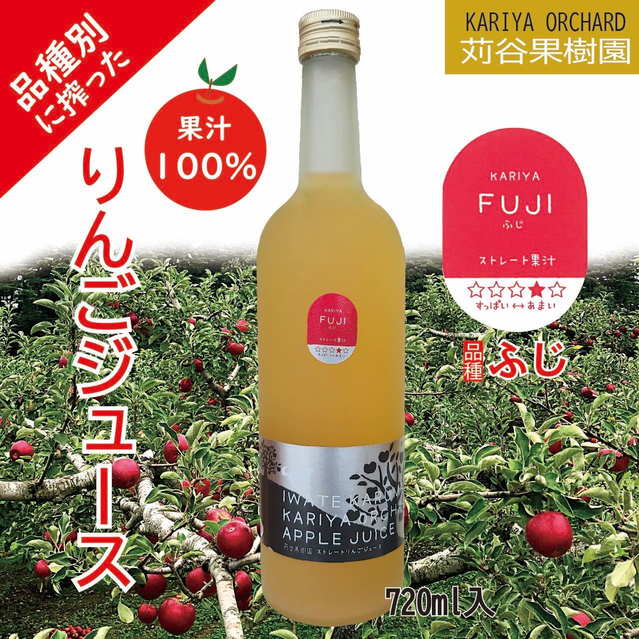 【苅谷果樹園/皮ごと丸搾り♪】りんごジュース(ふじ)720ml