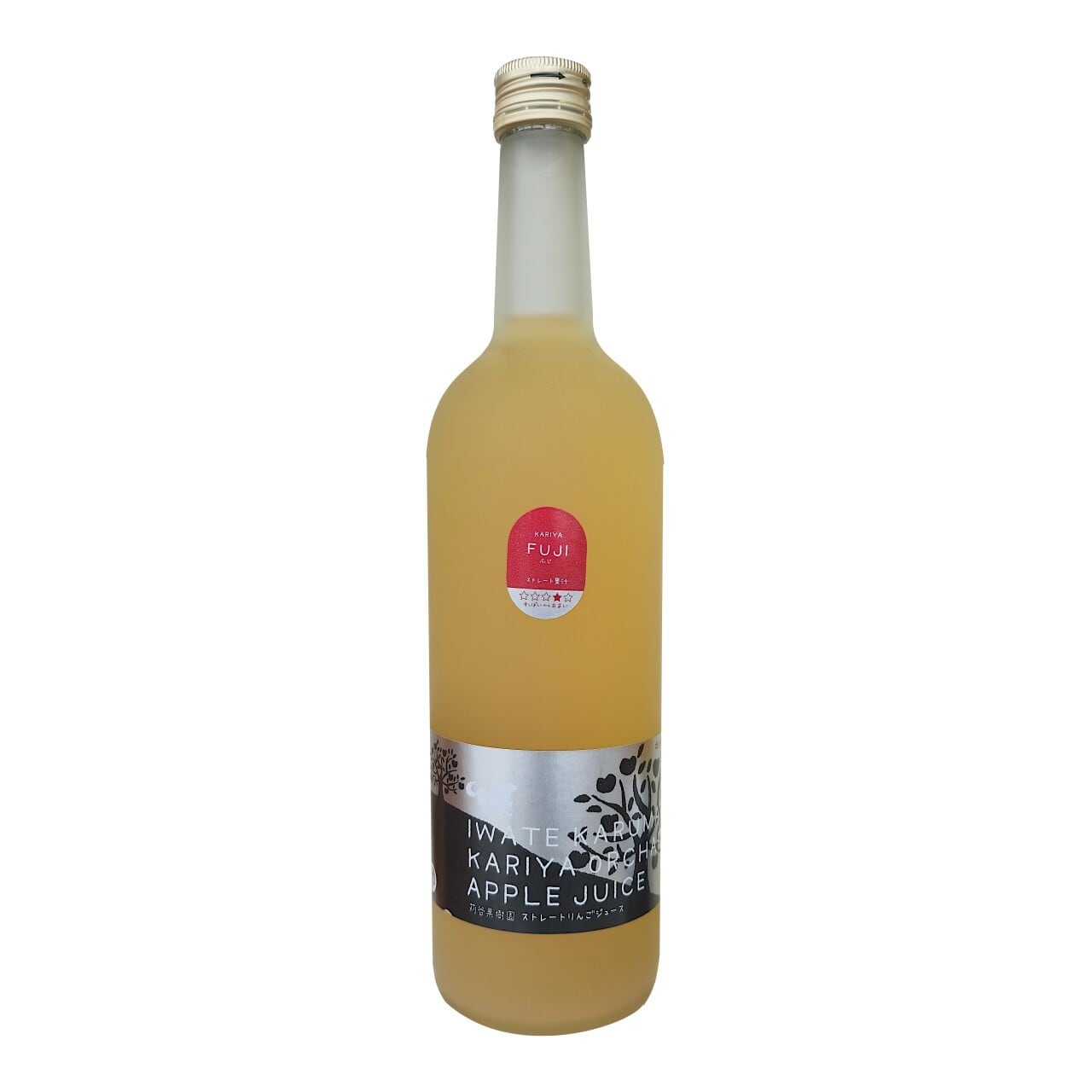 苅谷果樹園さんが丹精込めて育てたりんごを、品種ごとに皮ごと丸搾りした果汁100%のりんごジュース(ふじ)です。